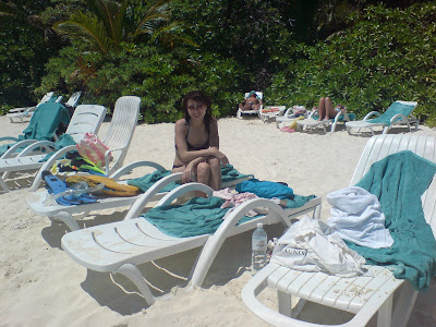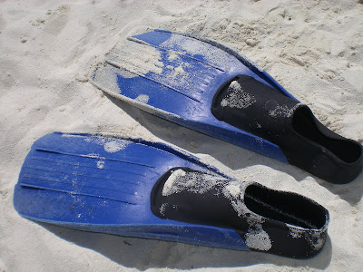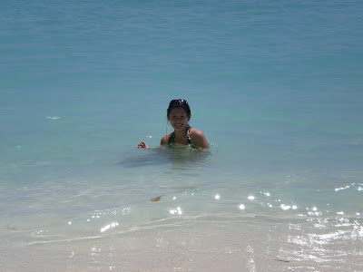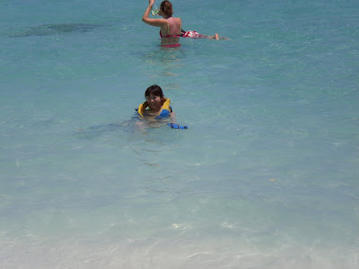 preparing to go snorkeling. Look at how clear and blue the water is!!!